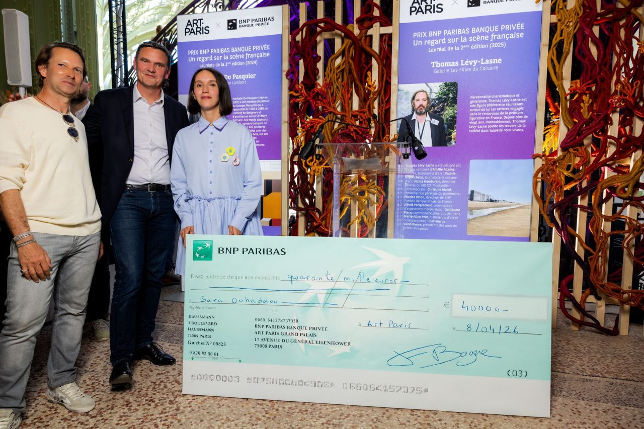 Pour sa troisième édition, le Prix BNP Paribas Banque Privée – Un regard sur la scène française, d’une dotation de 40 000 euros, a été remis à Sara Ouhaddou, représentée par la galerie Polaris, lors de l’inauguration d’Art Paris le 8 avril 2026 et en présence des membres du jury.
