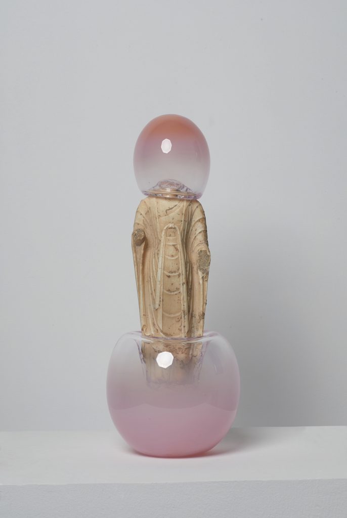 En partie spécialisé dans l’art asiatique, représentant notamment les artistes Ren Hang, Shen Han, Wang Haiyang, et Yang Youngliang, la galerie Paris-B dévoile, une œuvre de Zhuo Qi. Né en Chine en 1985 à Fuxin, situé dans la province du Liaoning, l’artiste réécrit l’histoire de l’art antique et asiatique. A Jingdezhen, il fait fabriquer en toute légalité des copies de statues anciennes abîmées par le temps et souvent issues de ruines, pour y greffer à sa façon poétique et humoristique des pieds, des mains ou des têtes en verre. En résulte, une incompréhension volontaire qui bouscule la sémantique.