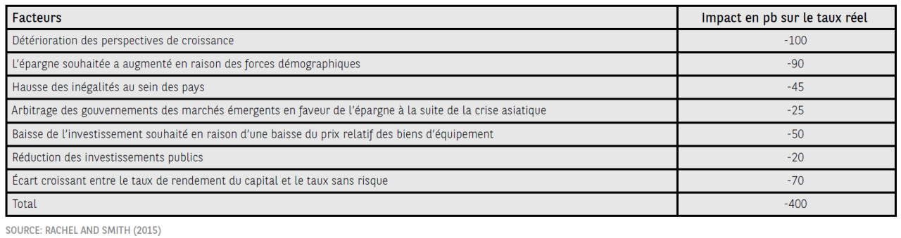 Tableau 2 – Moteurs historiques de la baisse du taux d’intérêt réel mondial