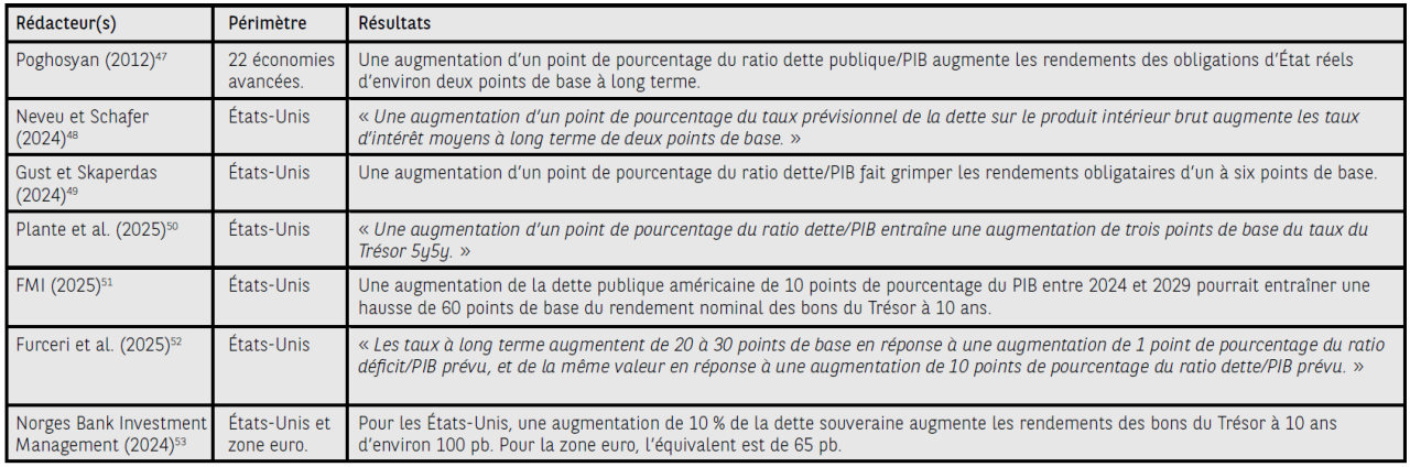 [52] Source : Furceri, Davide, Goncalves, Carlos et Li, Hongchi (2025), The impact of debt and deficits on long-term interest rates in the US, Document de travail du FMI, WP/25/141.