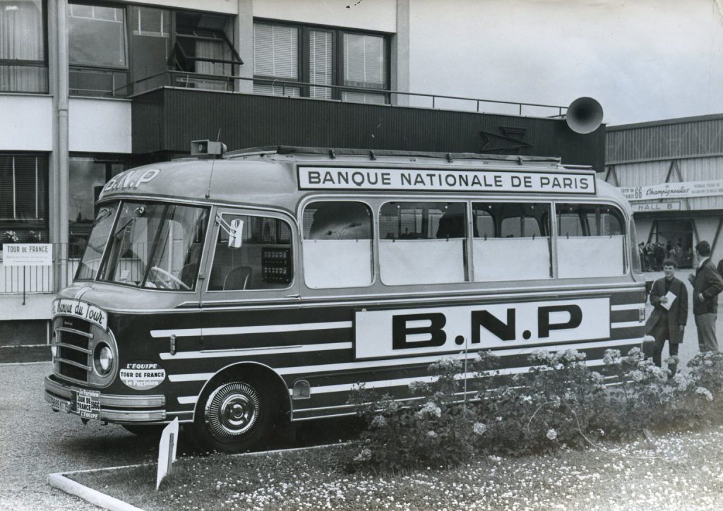 Moins de deux mois seulement après la fusion entre la BNCI et le Comptoir national d’escompte de Paris (CNEP) en mai 1966, le nom de la Banque nationale de Paris (BNP) fait déjà le tour de la France sur les véhicules de la nouvelle banque, pendant que des messages publicitaires sont diffusés par micro sur la route puis à l’étape. La BNP se place ainsi dans la continuité de son ancêtre, tout en faisant connaître sa nouvelle identité en France et à l’international.