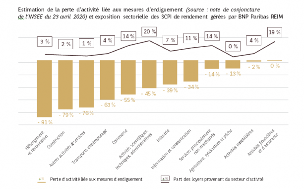 « Pour autant, l’impact de cette situation sur les SCPI sera très variable, souligne Didier Taquet, responsable marketing de BNP Paribas Banque Privée. Il dépendra en grande partie de la manière dont chacune aura construit son risque locatif. » Chez BNP Paribas Real Estate Investment Management (BNP Paribas REIM), par exemple, ce dernier est très dilué, réparti sur près de 700 locataires. « Le risque locatif est également limité du fait de la diversité des secteurs d’activité des locataires : aucune branche ne représente plus de 20 % des loyers, explique Fabrice Violot, directeur commercial chez BNP Paribas REIM France. Seulement 5 % des loyers proviennent des secteurs les plus touchés : 3 % pour l’hébergement-restauration et 2 % pour la construction, qui ont respectivement perdu 91 % et 79 % de leur activité durant le confinement. »