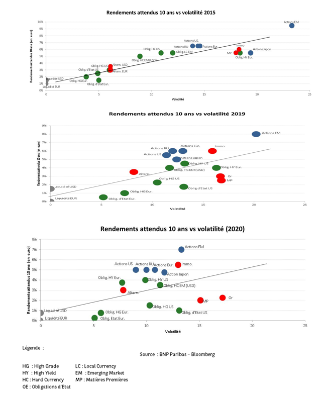 Comparaison des estimations de rendements attendus de 2020 avec celles de 2019 et 2015.
