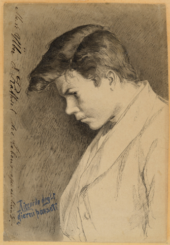 Portrait de jeune homme de profil Plume et encre noire, lavis gris 21,5 x 14,5 cm. Monogrammé et daté “HS.” “ 77”, inscrit “Riccorda degli giorni paesati” et “ Me.x : uber d. Räthset des Lebens sparenlired” © Benjamin Perronet