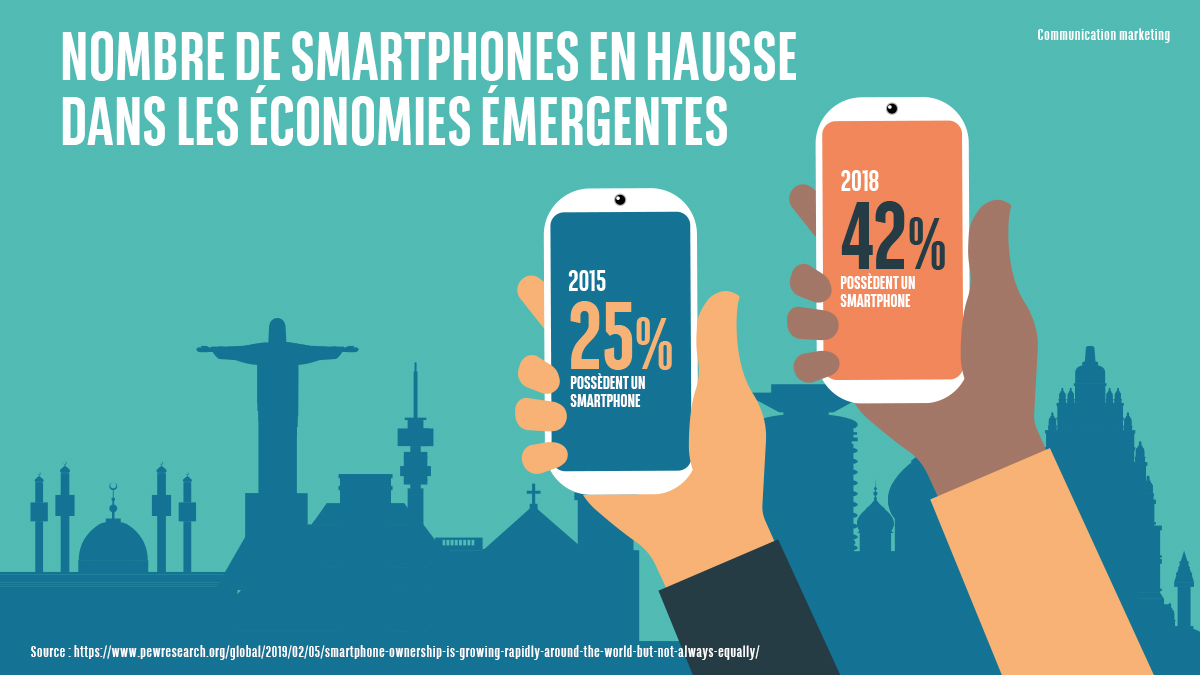Le nombre d’utilisateurs de smartphones dans le monde augmente, y compris dans les pays émergents où les jeunes individus sont ceux qui sont le mieux équipés.