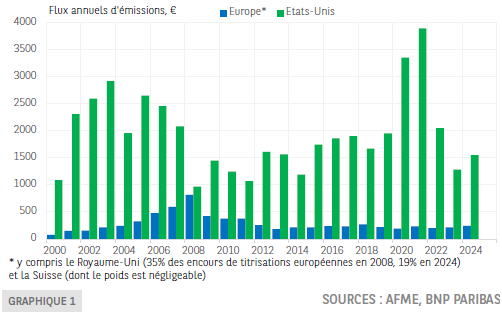 Émissions de titrisations comparées Europe* - États-Unis